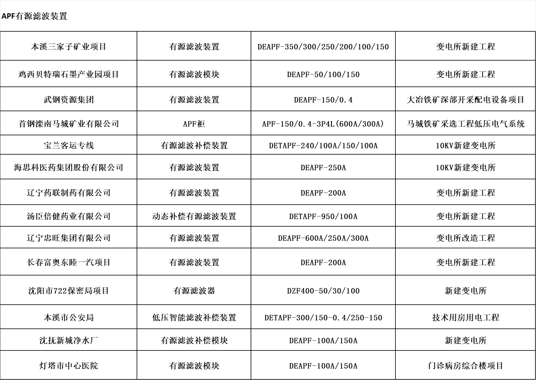 該產(chǎn)品可有效治理電力系統(tǒng)中存在的諧波超標(biāo),電流及電壓畸變率上升導(dǎo)致的一系列電能質(zhì)量問題,降低諧波含量、保障系統(tǒng)設(shè)備安全運(yùn)行。廣泛應(yīng)用于存在典型非線性負(fù)載設(shè)備行業(yè),非線性負(fù)載設(shè)備主要有UPS、開關(guān)電源、變頻器、整流器、充電機(jī)、中頻爐、礦熱爐、電焊機(jī)、可控硅調(diào)光系統(tǒng)等。